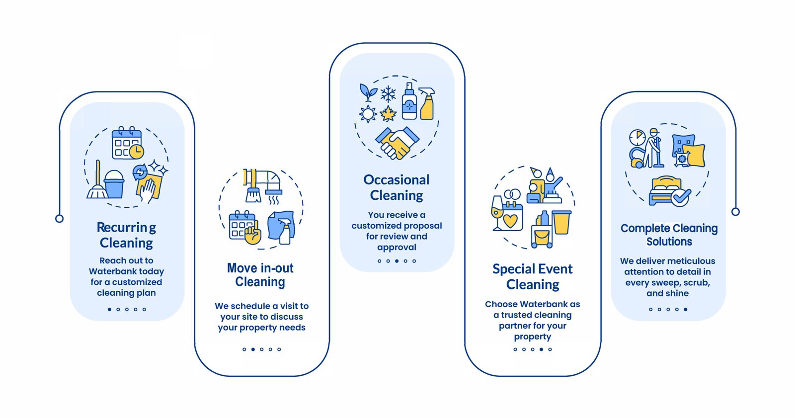 Waterbank creates a plan tailored specifically to your property, starting with a thorough site assessment and listening closely to your goals. Your customized schedule addresses every detail, including elevators and elevator tracks, lobbies, common area washrooms, and other high-traffic spaces, while staying aligned with your maintenance budget. This ensures consistent results, a healthier environment, and the peace of mind that comes from knowing your property is cared for efficiently and effectively.